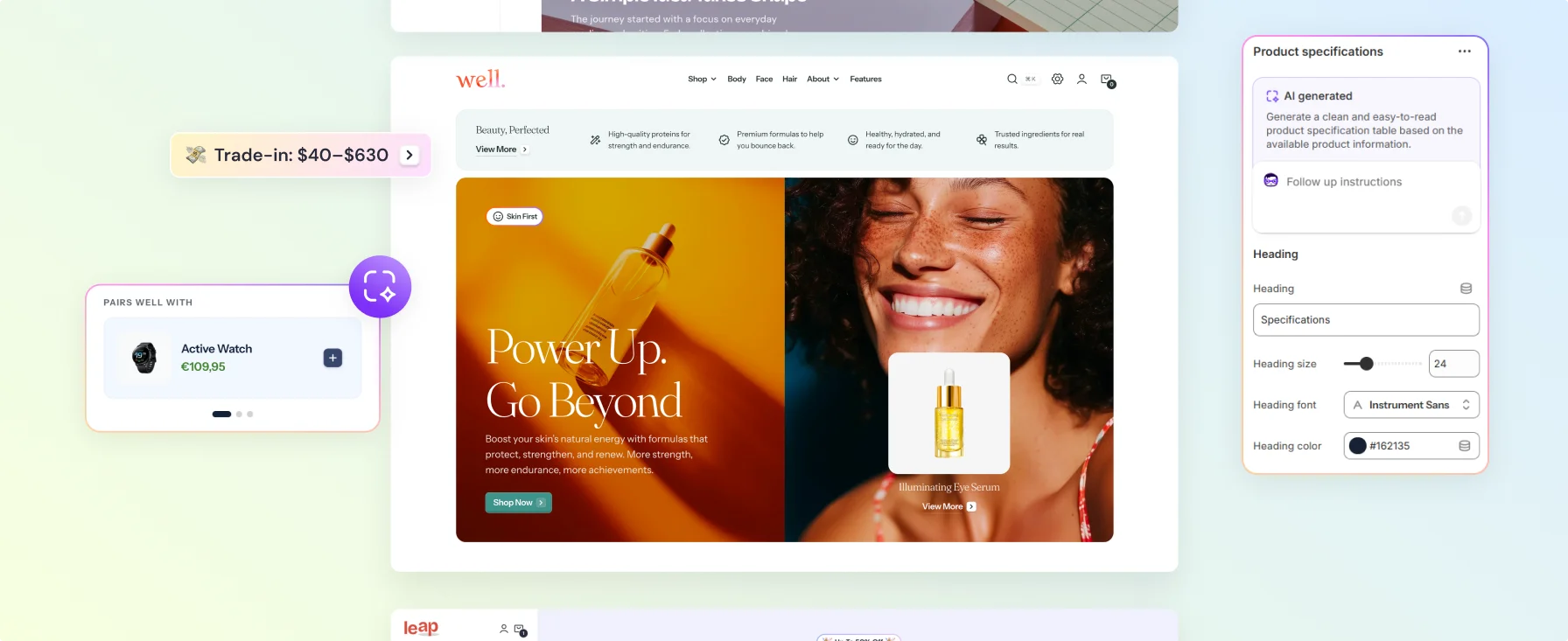 Choose from five uniquely designed hero layouts to instantly tailor your storefront’s first impression.