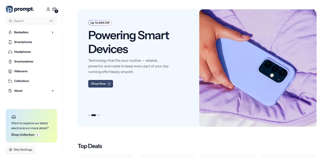 - Clean and modern with a product-focused layout, made for electronics, gadgets, and tech stores.View Electronics Demo